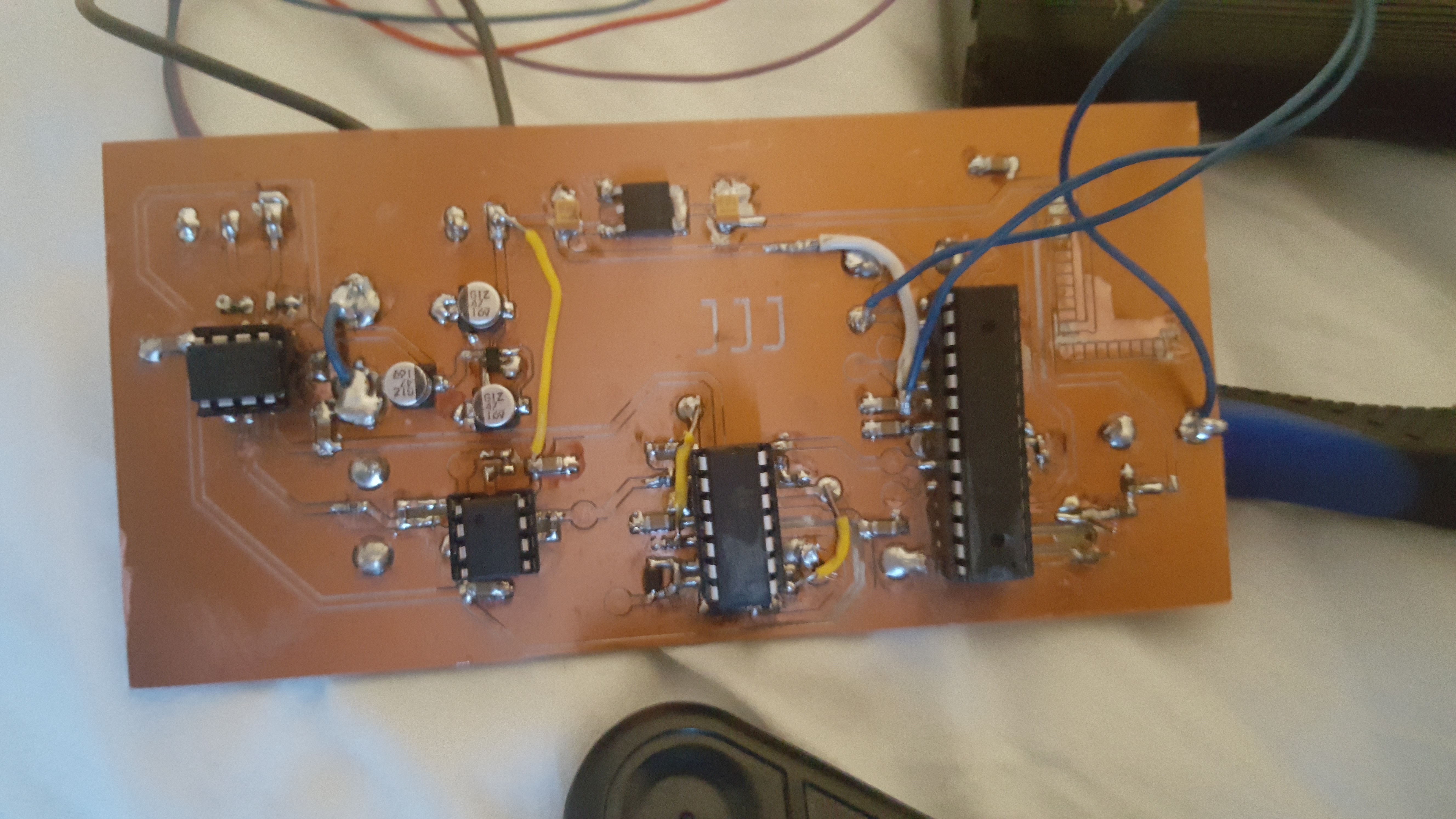 The remaining components soldered and measurements taken to the case. During the soldering, some missing traces noticed, but fixed with jump wires. Traces missing on the layout.